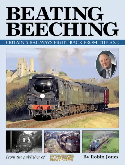 The 50th anniversary of the famous report by British Railways chairman Dr Richard Beeching which announced the closure of thousands of miles of lossmaking branch lines and cross-country routes has seen many books appear highlighting the public op-position and the mistakes that were made. This one, however, documents the way back for railway lines that were earmarked for closure by the axeman, who has been described as Britain ’s most hated civil servant of all time. Had the recommendations in Beeching’s report The Reshaping of British Railways been followed to the letter, the UK ’s national railway network would have been more drasti-cally reduced. However, many lines were saved or reopened, by a combination of public and political pressure, by local authorities wanting to reduce traffic congestion, or by ordinary people who were not prepared to stand by and watch it happen. Beating Beeching looks at the wide spectrum of ways in which railway lines closed be-fore, during and after the Beeching era have been given a new lease of life. Read about - the civil servant who plotted within the corridors of power at Whitehall to stop a major cross-country route through the heart of Wales from being axed. How an eagled-eyed local weekly newspaper accountant broke an embargo on an adver-tisement – and saved a line which went on to become a strategic and extremely busy commuter route in the years that followed. The story of how a massive public campaign to save Britain ’s most beautiful railway – the Settle and Carlisle line – succeeded – with more than a little inside help from one of British Rail’s own managers. The reopening of a network of lines to regenerate the South Wales coalfield after the closure of the deep coal pits. The conversion of axed lines into major tourist attractions essential to many a local economy by railway preservations. Where preserved steam lines are now performing a significant public transport function once again.