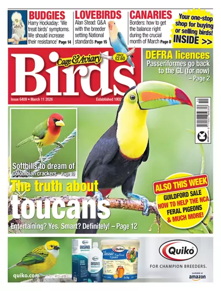 Our cover bird is a toucan - just as charismatic as any hornbill, but less familiar in collections. That’s a shame, because given enough room and company (they’re very social), toucans make wonderfully stimulating subjects. And they aren’t just amusing, they are decidedly intelligent. We focus on one species - the glorious keel-billed - while casting our eye over some of its relatives in this magnificent New World family. In support, we’ve got an assessment of 2025 in the zebra finch world, topical advice for your canary stud, and a round-up of softbills both in collections and the wild (South America in fact!) We hear advice and life lessons from two serious experts on budgies and lovebirds, visit the popular and well-run Guildford bird sale, and revisit the knotty story of how the feral pigeon got it’s name. Plus: DEFRA news (of course).