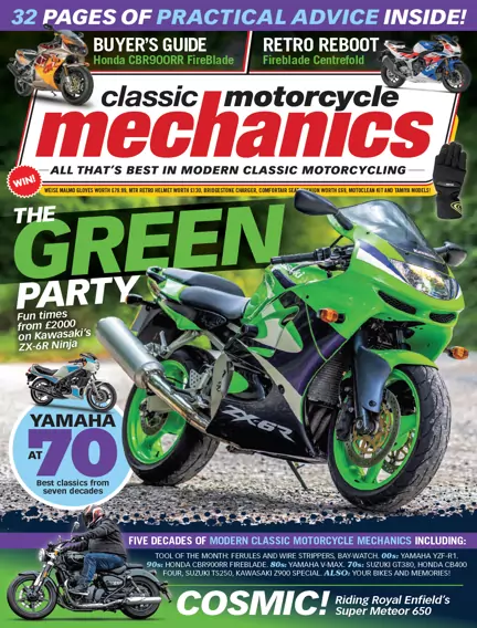 Packed with 32 pages of hands-on advice, this issue dives into iconic machines and practical projects. Highlights include a full review of Royal Enfield’s Super Meteor 650, a buyer’s guide to Honda’s legendary CBR900RR FireBlade, and a retro reboot concept Blade. Plus, project updates on Kawasaki Z900, Suzuki GT380, Yamaha V-Max, and more. Classic tips, tools, and future classics await!