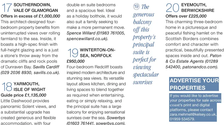 In the April Issue of Coast Magazine you can win an amazing £1000 voucher to a fantastic getaway by the sea with luxury self-catering, Cornish holiday company Beach Retreats. You can also use our guide to the best Easter Breaks around the British Isles to book your perfect holiday by the sea without having to find your passports or navigate an airport with your children! In additon, discover the 10 top breaks on the Jurrasic Coast and discover how to book stunning boat trips around the country to see our incredible birdlife this spring If you are looking for a new home by the sea, we've picked out the top properties for sale to save you the hard work of searching. Find out who won the Historic Ships photography competition and discover the work of the brilliant artist from Brighton in Sussex who creates seafood inspired artworks with sequins. Read about the architect who hand built a beautiful family escape on a remote Scottish Island and how his family now spends their time connecting to nature there. Don't miss this fantastic spring issue from the experts on staycations and coastal property for sale!