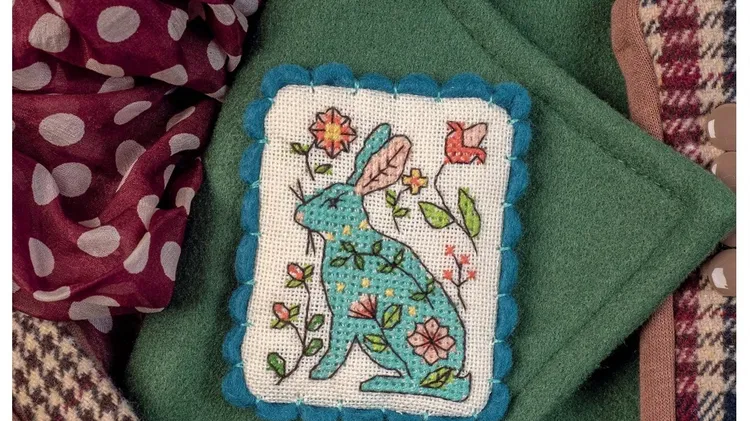 Our hare would make a lovely card design. Iron your stitching on a low-heat setting on the back to get it pristine first Step 1 STITCH the brooch in the middle of the fabric, using two strands for the