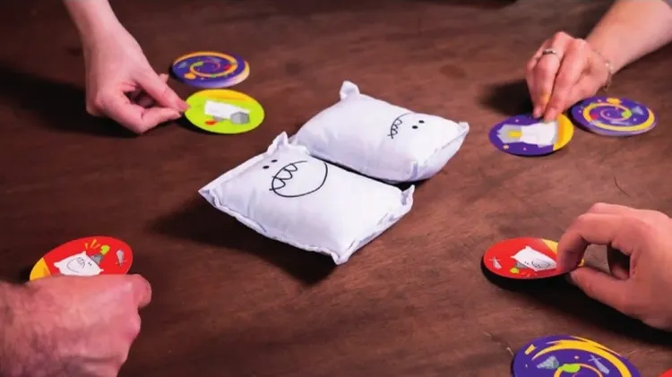 That’s an interesting looking game, we thought. Those pillows look a bit like bean bags, like they might need to be chucked at someone. Well, this is a book you absolutely can judge by its cover. One