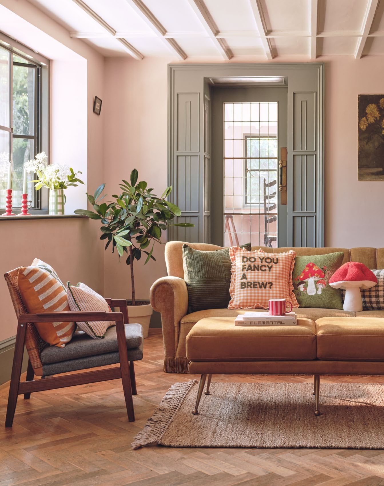 Cushions, from £8; mug, £2; jug, £12; candlesticks