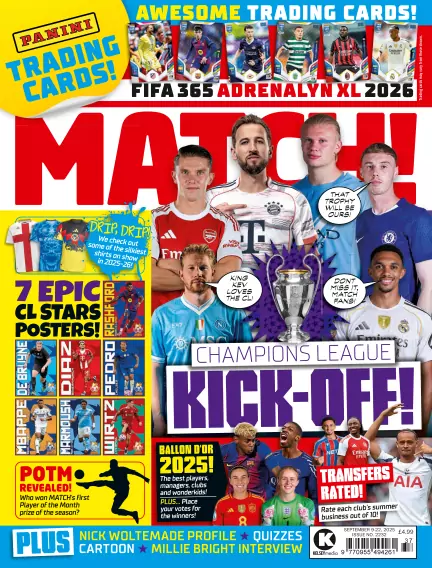 MATCH is the perfect magazine for aspiring young footballers! Out every fortnight, MATCH provides you with unrivalled and unique coverage of the Premier League, Champions League, EFL, Women’s Super League and European football. We bring you closer to the stars with cool features and interviews, epic stats, transfer gossip, LOL banter, FIFA tips, new boots, funny pics, cartoons, quizzes, previews, posters, gifts and much more! Plus, we've got it covered off the pitch too, following footballers’ latest social media activity, fashion trends and gaming news. The brand has also gone fully interactive, with well over one million social media followers engaging every day on Facebook, Instagram, Twitter, TikTok, Snapchat and YouTube. Combine all of that with the UK's best-selling football annual, and you're left in no doubt that MATCH really is No.1 for footy.