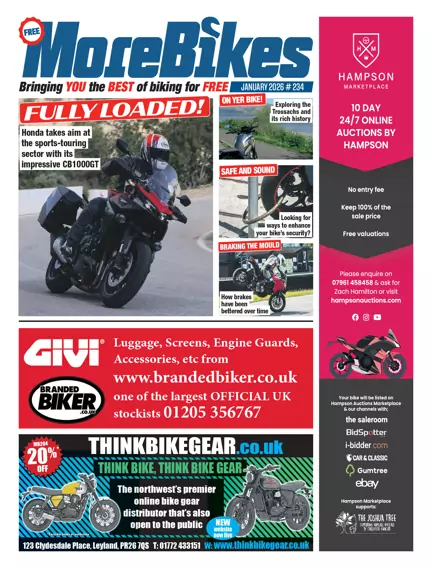 Kick off 2026 with MoreBikes! Explore Honda’s CB1000GT sport-tourer, Triumph’s Tiger Sport 800 Tour, and the electric Honda WN7. Discover the evolution of braking technology, Mondial Piega 125 review, and Yamaha R1M buyer’s guide. Plus, expert tips for riding with a pillion, layered bike security strategies, and the latest news from Triumph, BMW, MV Agusta, Suzuki, and QJMOTOR. Packed with rides, tech, and inspiration!