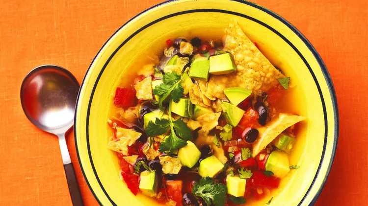 INGREDIENTS 2 tbsp oil 1 large onion, finely chopped 4 garlic cloves, chopped 1 red chilli, deseeded and chopped 400g can black beans, drained and rinsed 1 litre vegetable stock Zest and juice of 1 un