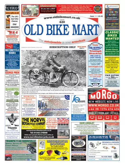 Old Bike Mart offers the UK’s largest selection of classic motorcycle classifieds. It features news, racing reports, reviews and newly discovered historic machines, as well as hundreds of adverts to browse.