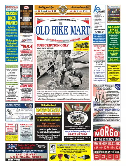 Old Bike Mart offers the UK’s largest selection of classic motorcycle classifieds. It features news, racing reports, reviews and newly discovered historic machines, as well as hundreds of adverts to browse.