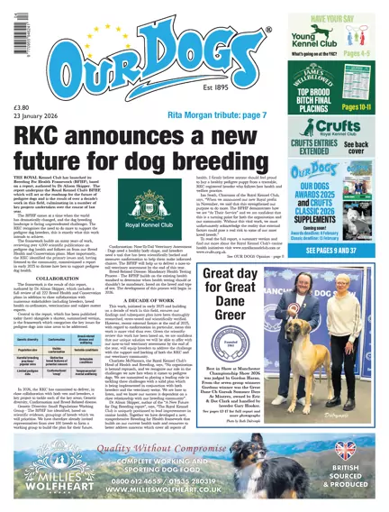 Our Dogs (est. 1895) is the world famous, weekly canine newspaper put together by experts, in print and online; it is a digest of news, events and happenings in the world of show dogs. We bring readers up-to-the-minute news and photographs from all around the world of dogs, plus as show reports, breed notes and interesting articles and features each week. It is essential reading for anyone who is serious about pedigree dogs.
