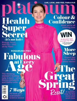 The Spring issue of Platinum stars actress Rosamund Pike, as we take a look at her commitment to her craft * Get more from your GP appointment with Dr Harper’s advice * Spring style to brighten your wardrobe * Your midlife spring reset * How to grow wiser and wilder * When to know you have enough * Regaining your confidence after cancer * WIN! A luxury spa escape for two worth £600.