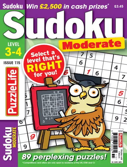 Our unique range of four sudoku titles are graded by difficulty – PuzzleLife Sudoku Moderate 3-4 contains easy-to-medium sudokus, which are slightly above beginner level but not too fiendish! There's also £2,500 up for grabs every month in this handy-sized mini-magazine, so don't miss out.