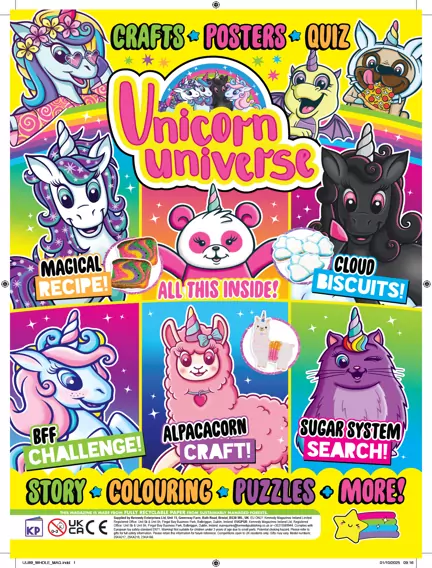 Step into a world of magic, friendship and imagination with Unicorn Universe! Packed with puzzles, games, stories, poems, makes and bakes, this is the ultimate unicorn mag! Join the Unicorn Squad and discover the amazing worlds with your new BFFs - Nova, Lexi, Luna, Phoebe and Comet! Filled with unicorns, mermaids, narwhals and more, Unicorn Universe is the most magical place EVER to explore!